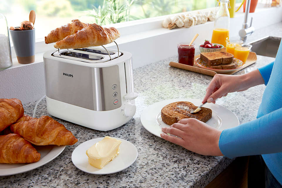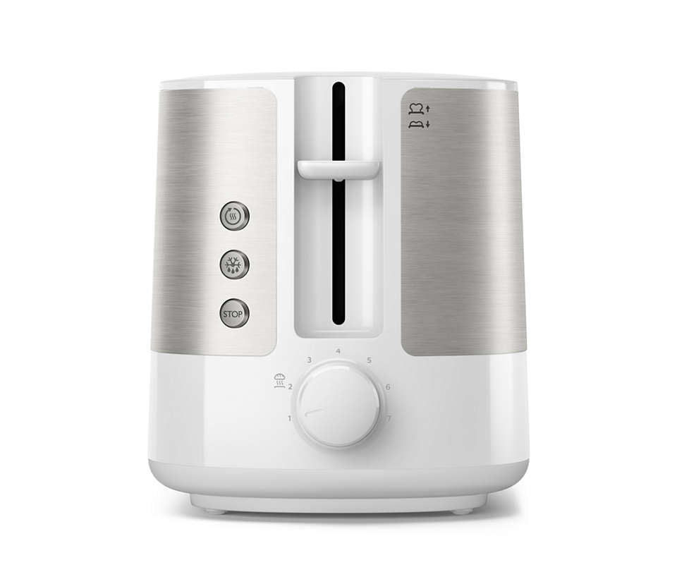 The self centering mechanism perfectly centers each slice for even browning, regardless of thickness.